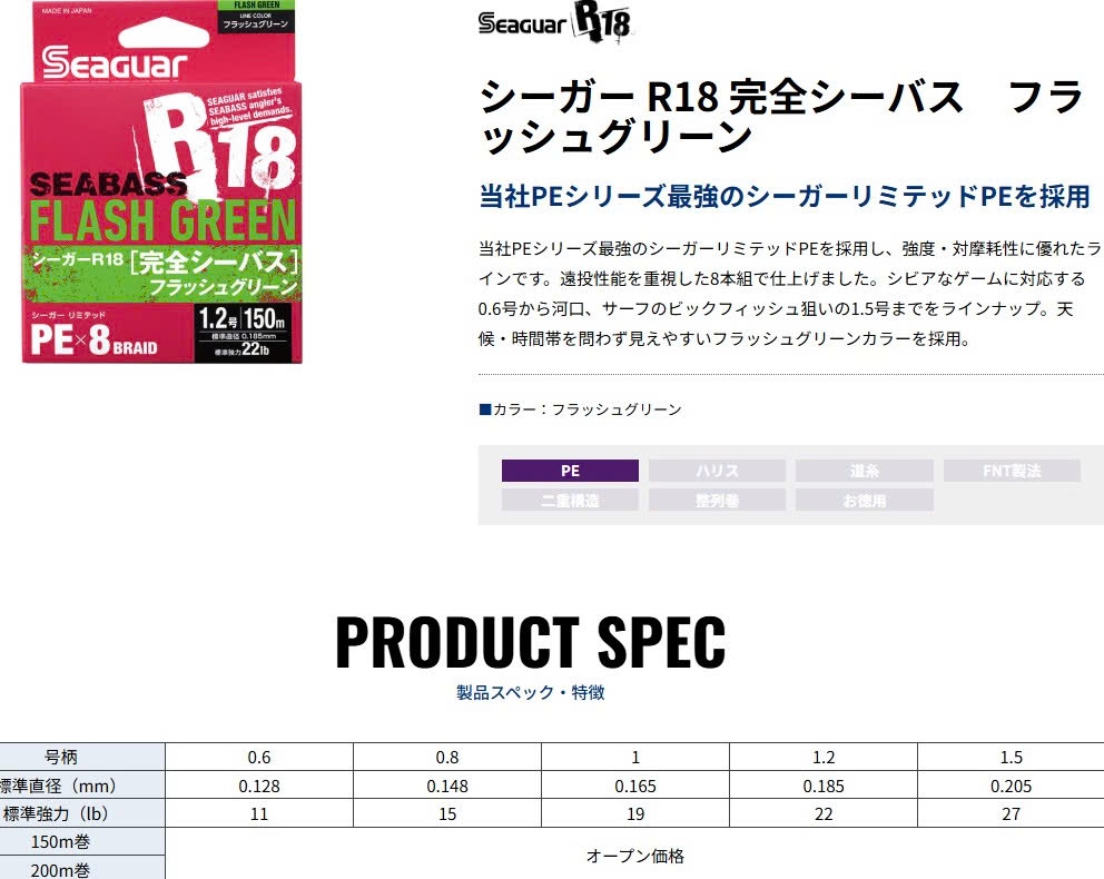 SEAGUAR SEABASS R18 FLASH GREEN #0.6 quantity